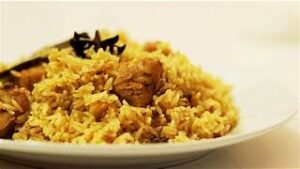 Bagara Rice with Chicken Curry / Chicken Fry – 240/-